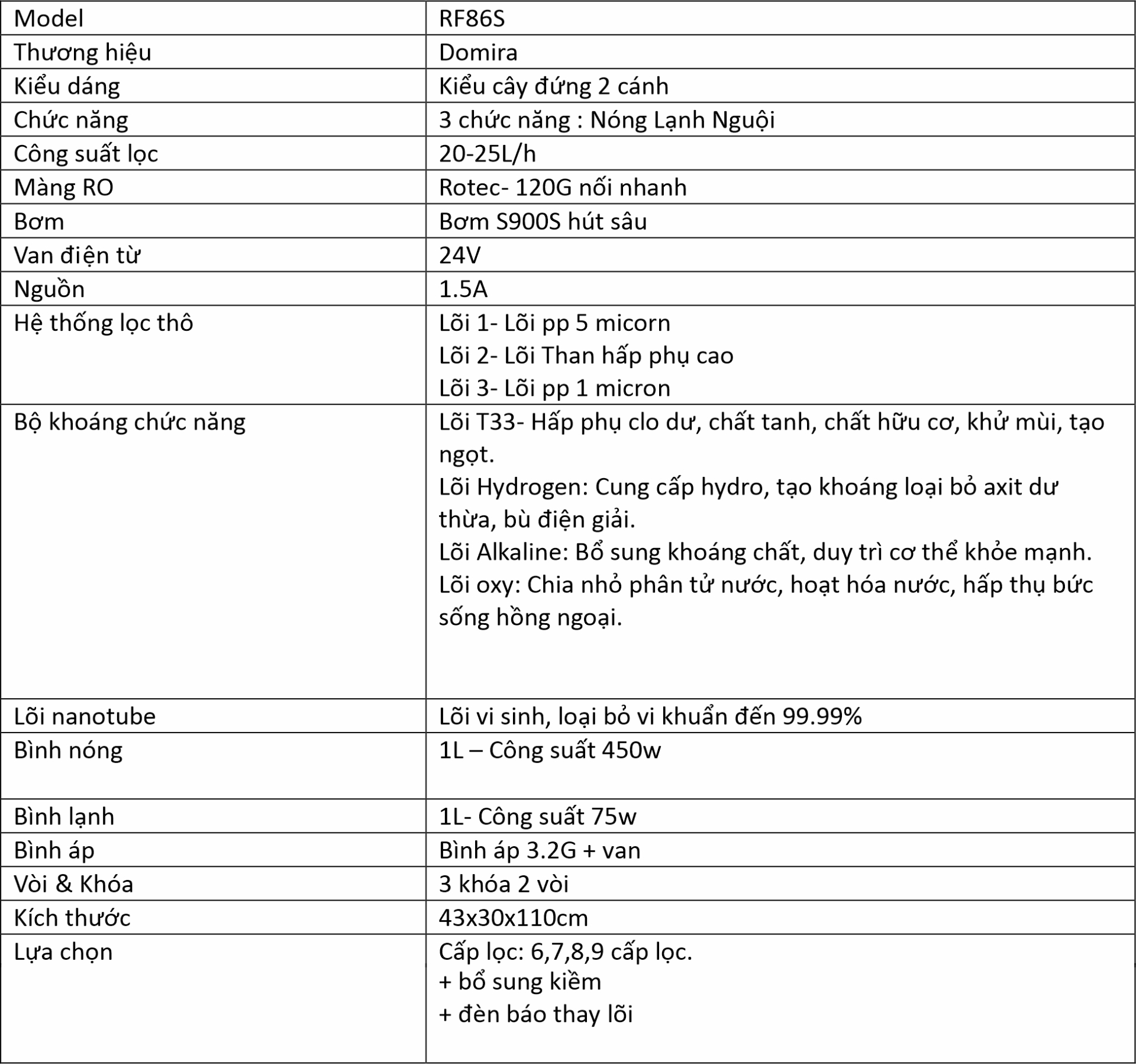 MÁY LỌC NƯỚC NÓNG - LẠNH - NGUỘI ( RF86 - S )